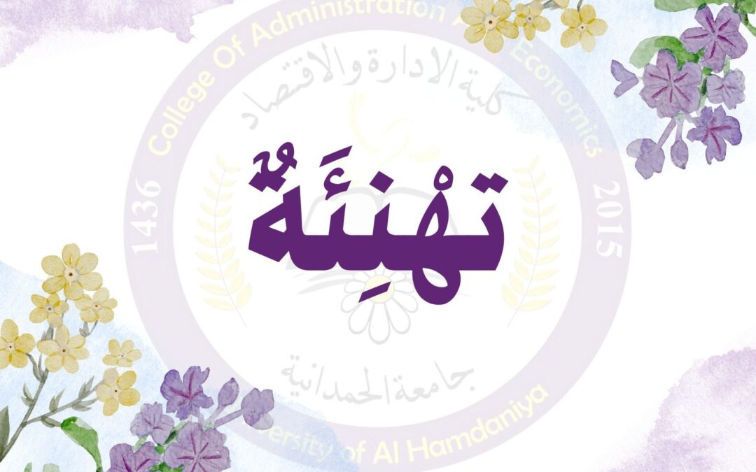 تتقدم عمادة كلية الإدارة والاقتصاد بأحر التهاني والتبريكات إلى الدكتورة جميلة حمران نامس بمناسبة حصولها على الترقية العلمية إلى مرتبة أستاذ مساعد، متمنين لها دوام الموفقية والنجاح ومزيداً من العطاء في مسيرتها الأكاديمية والبحثية، خدمةً لجامعتنا العزيزة ومسيرتنا العلمية.